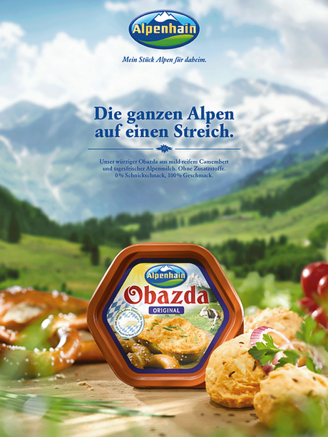 Für den Obazda und Back-Camembert von Alpenhain, entstanden diese Anzeigenmotive, welche in verschiedensten Magazinen wie Freundin, Cosmopolitain, usw. veröffentlicht wurden. Von der Konzeption der Motive, Begleitung des "still life" Fotoshootings bis hin zu Layout und Post Production wurde das Projekt ganzheitlich betreut.